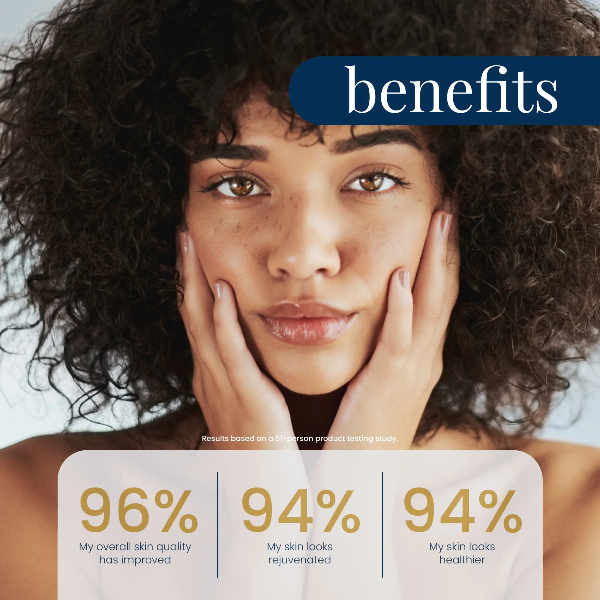 Renue Blue works at the cellular level to deliver time-released actives that restore NAD⁺ to improve skin's texture, firmness, and dermal matrix.